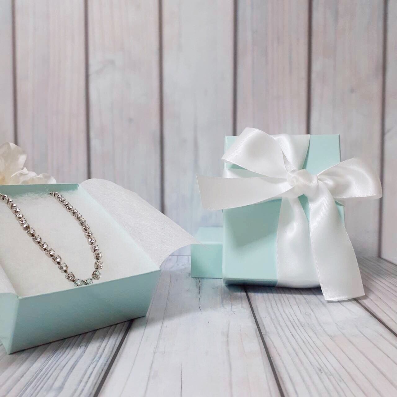 ブルーボックスにホワイトリボンでのご提供です。