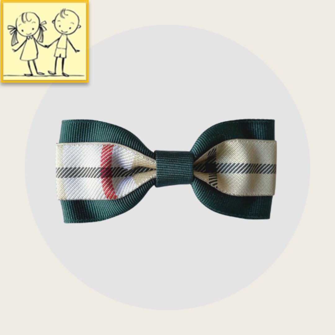 バーバリー風チェックをアクセントにした上品な仕上がりのリボンバレッタです。