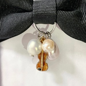 バイオリンやパールなどの揺れるチャームがポイントのグログランリボンバレッタ。