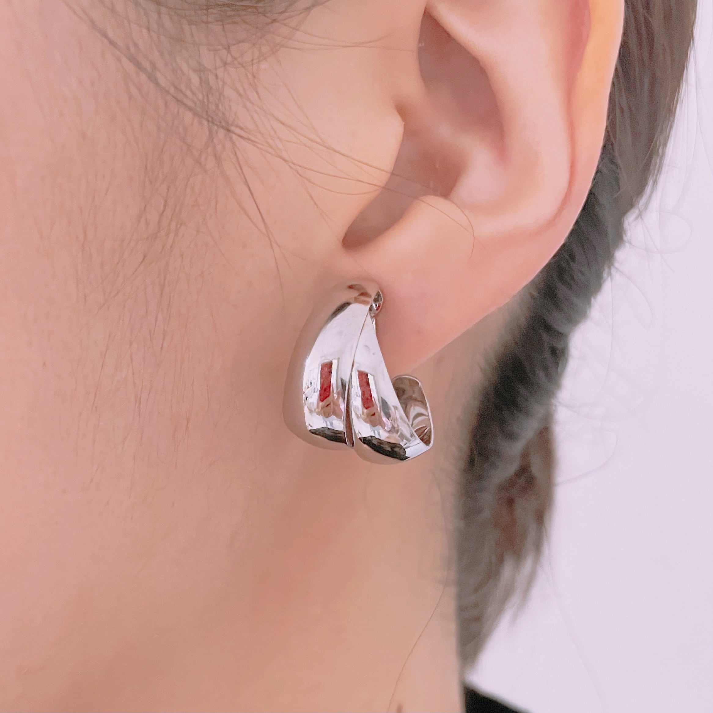 ころんとしたデザインが魅力の大ぶりのイヤリングです。