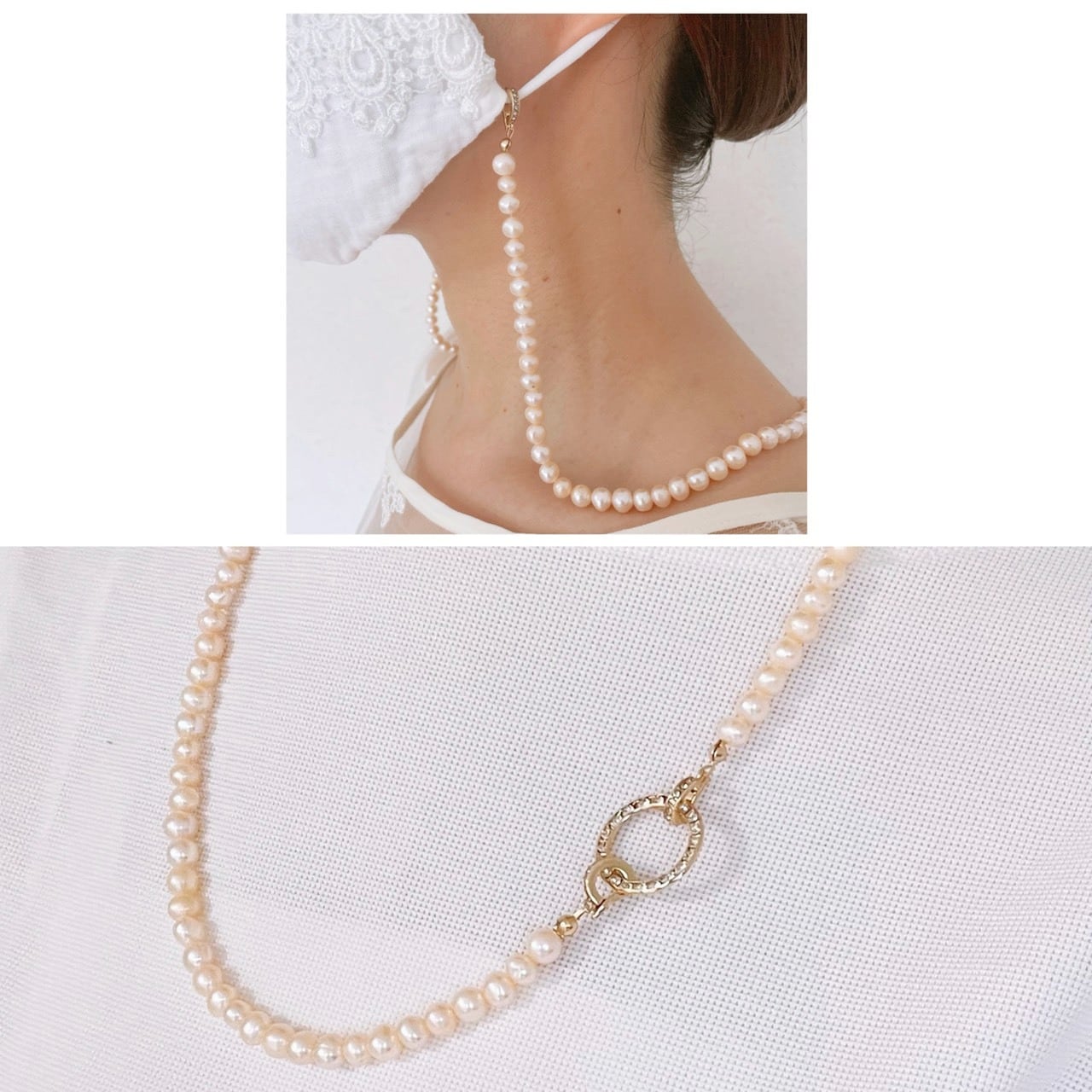 着色をしていない天然淡水真珠を使用したマスクチェーンです。